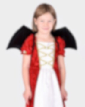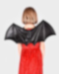 Svarta fladdermusvingar som blir ett perfekt tillbehör till din maskeraddräkt inför Halloween. Vingarna är tillverkade av 100 % polyester med en stålram i vingarnas övre kant för extra form och stabilitet. De har elastiska axelband och en snygg svartmetallic finish. Passar barn från ca 2 till 14 år.