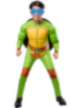 Redo att bekämpa brott tillsammans med dina favoritninja-sköldpaddor? Med denna 4-i-1-maskeraddräkt från Ninja Turtles kan barnet välja att vara Leonardo, Donatello, Raphael eller Michelangelo. Dräkten har vadderad överkropp och armar som ger en muskulös look, samt en avtagbar sköld baktill för extra action.