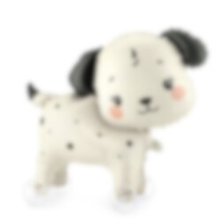 Möt den gulligaste kalasgästen, en dalmatinerhund på hjul! Denna busiga folieballong på genomskinliga hjul kan rulla runt på golvet och bli ett lika roligt lekobjekt som dekoration för de yngre kalasgästerna.