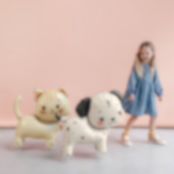 En söt liten katt på hjul som kan rulla runt på golvet, lika rolig att leka med som att dekorera med! De varma färgerna och den lekfulla designen passar perfekt på katt-kalas och andra barnkalas.