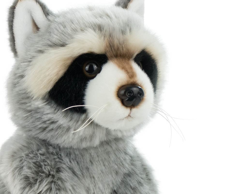 Detta tvättbjörnsgosedjur har ett vänligt uttryck och fina detaljer som ger ett realistiskt och levande intryck. Den mjuka kroppen gör den här lilla figuren lätt att tycka om från första stund.