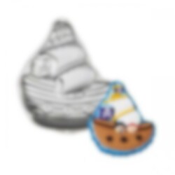 Är det piratkalas så är det, och då duger inte vilken kaka som helst. En äkta pirattårta med skepp, segel och allt är vad som behövs! Du kan även frysa ner glass i formen. Dekorera tårtan med t ex marsipan eller spritsa i olika färger för att få till ett fint piratskepp. Tårtform Piratskepp är tillverkad av aluminium och tål endast handdisk. Storlek: 33 x 28 x 5 cm.